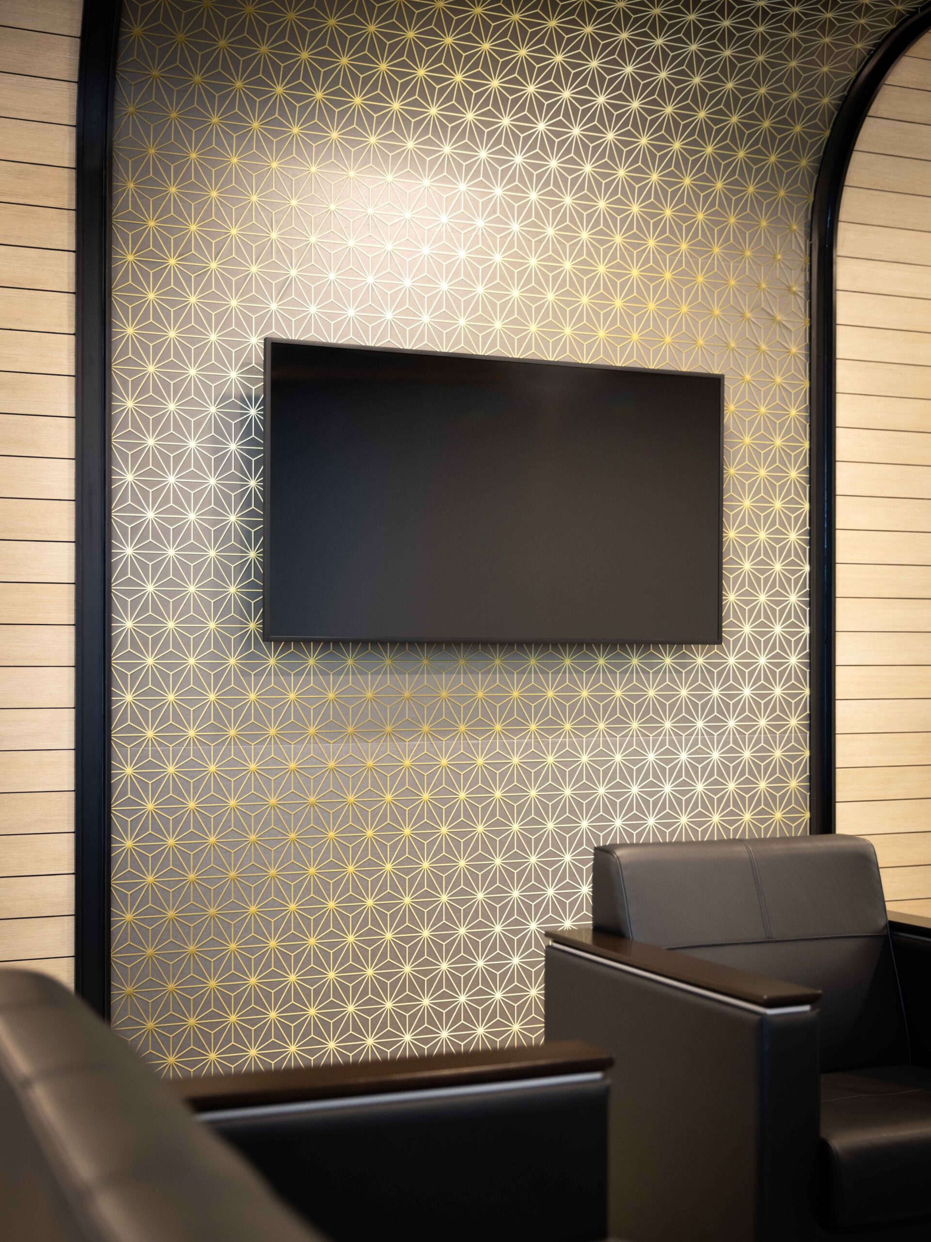 贵宾室以静谧典雅为格调,设计灵感源自日本工艺与传统。弧形木质墙面与富有纹理的天花无缝衔接,形成特色墙面,营造出如茧般的私密空间,让来客得以专注休憩。带有自然纹理的磨砂玻璃为空间注入现代生机,以当代方式致敬 NYK 的传统文化根基。