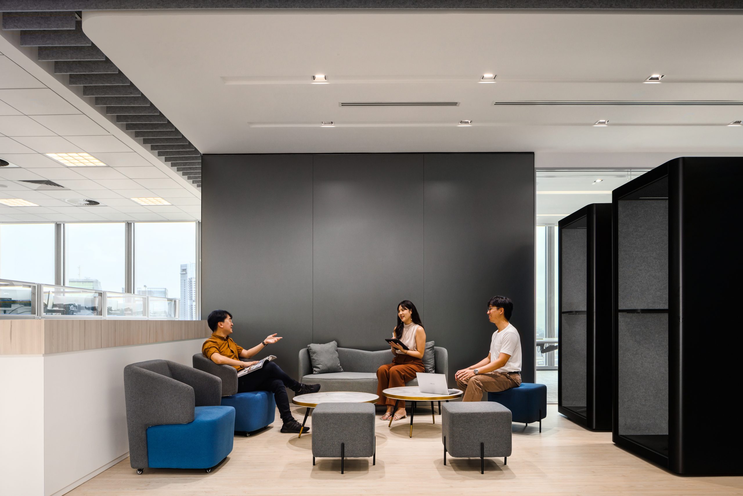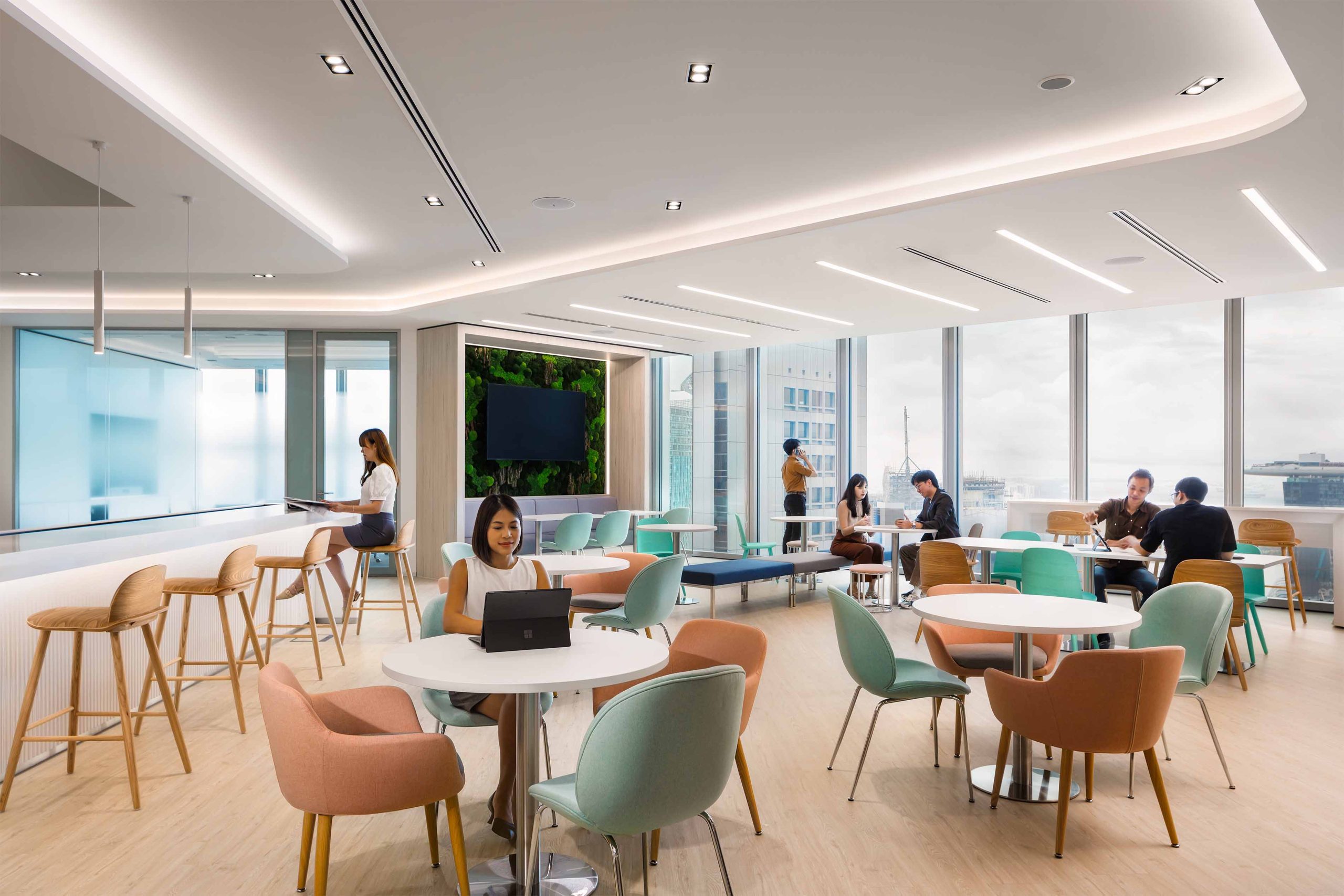 该建筑–嘉德置地,在2018年被授予BCA绿色标志铂金奖,以表彰其在打造绿色社会方面的广泛努力。考虑到这一点,办公室的设计体现了对这一事业的认同和倡导。在整个双层办公室内,安装了运动传感器,以检测办公室内未使用的区域,从而自动关闭灯光。精心挑选的节能照明灯具符合为该空间分配的总瓦数限制。工作台附近有回收箱,以提供方便并促进回收。