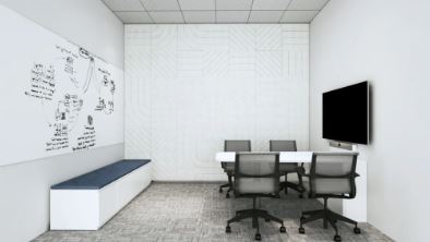 为了方便保密讨论,楼板的核心部分是被称为 “团队室 “的封闭式会议室。这些多功能的房间可以通过移动松散的家具和调整电脑屏幕的位置,轻松地转换为独立的办公室。为了保持这个空间的灵活性,隐藏在隔音板和墙壁内的电线被设计成可以适应各种配置,而不需要对空间进行大修。