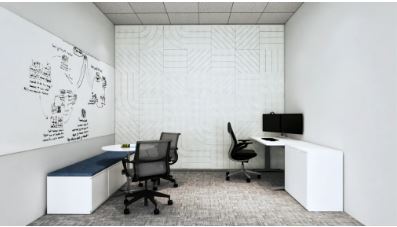 工作站是定制的,以促进符合人体工程学的工作–高度可调的桌子,鼓励一整天的运动,以及大型显示器屏幕,有效地显示他们的工作。在每张桌子之间,有一个隔板,也有助于使员工专注于他们的工作。