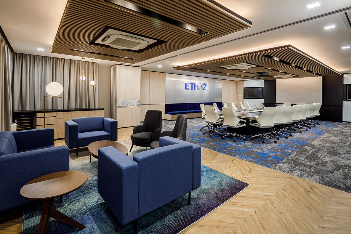 与客户服务中心相邻的是为各种类型的会议需求而创建的会议套间。其中包括领导团队经常举办行政会议的会议室,因此必须凸显亿多世的品牌。
