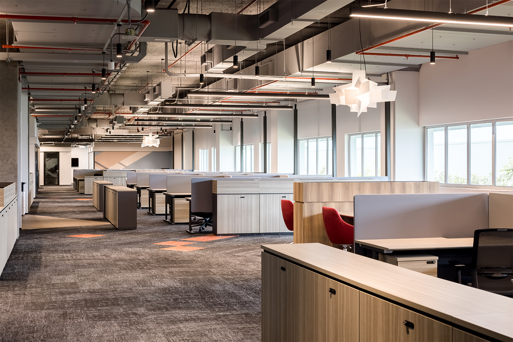 考虑到将会有很多人共享一个大型开放的办公空间,ASM决定将在大多数区域采用”邻里”概念。这个实用的概念将大型空间隔离成独立功能的区域,并有自己的设施,如迷你茶水间、会议室、聚集点。这些随手可及的资源让员工们有能力高效地工作,并鼓励他们在邻里之间进行合作和”生活”。