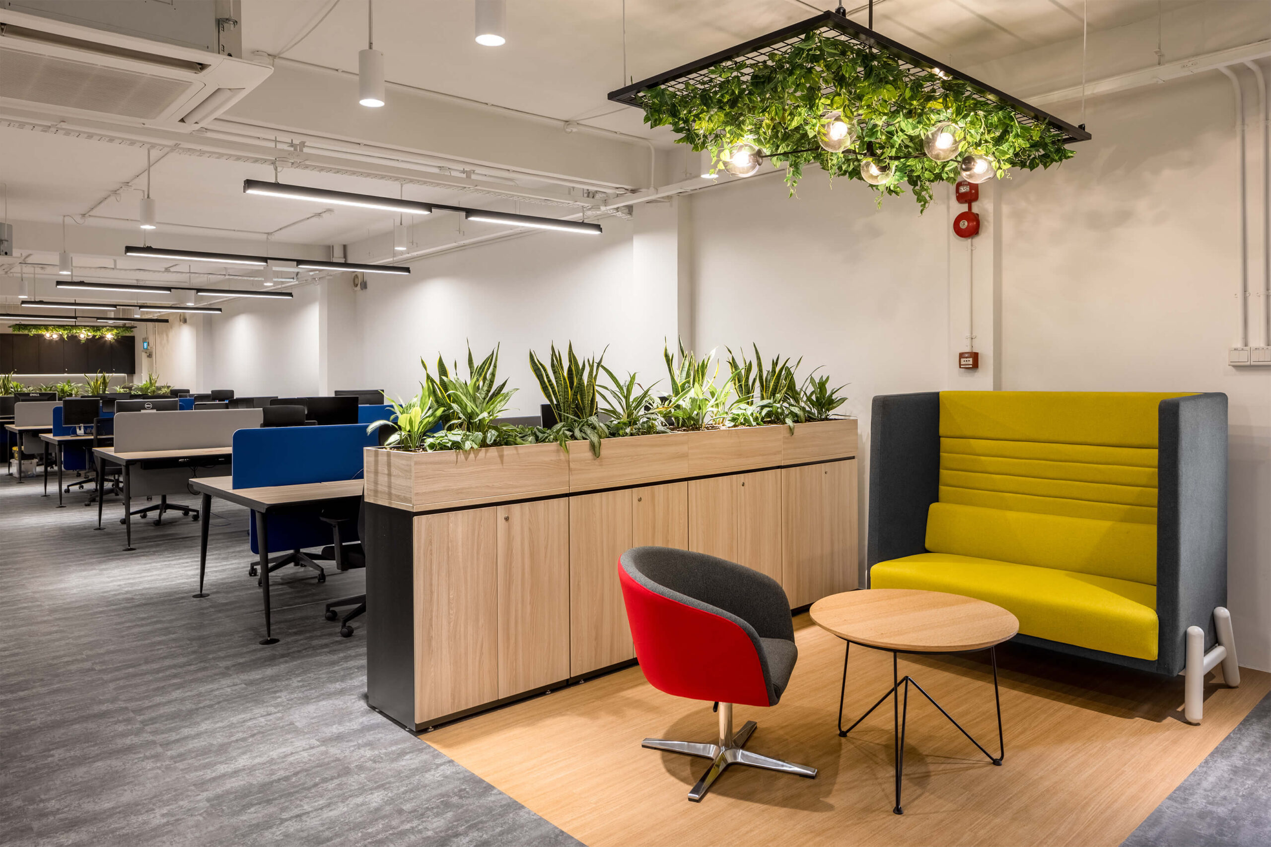 为了提高敏捷性和协作性,我们在工作站附近引入了聚集点。种植箱的战略定位是提供隐私并增加空间中的生物元素。