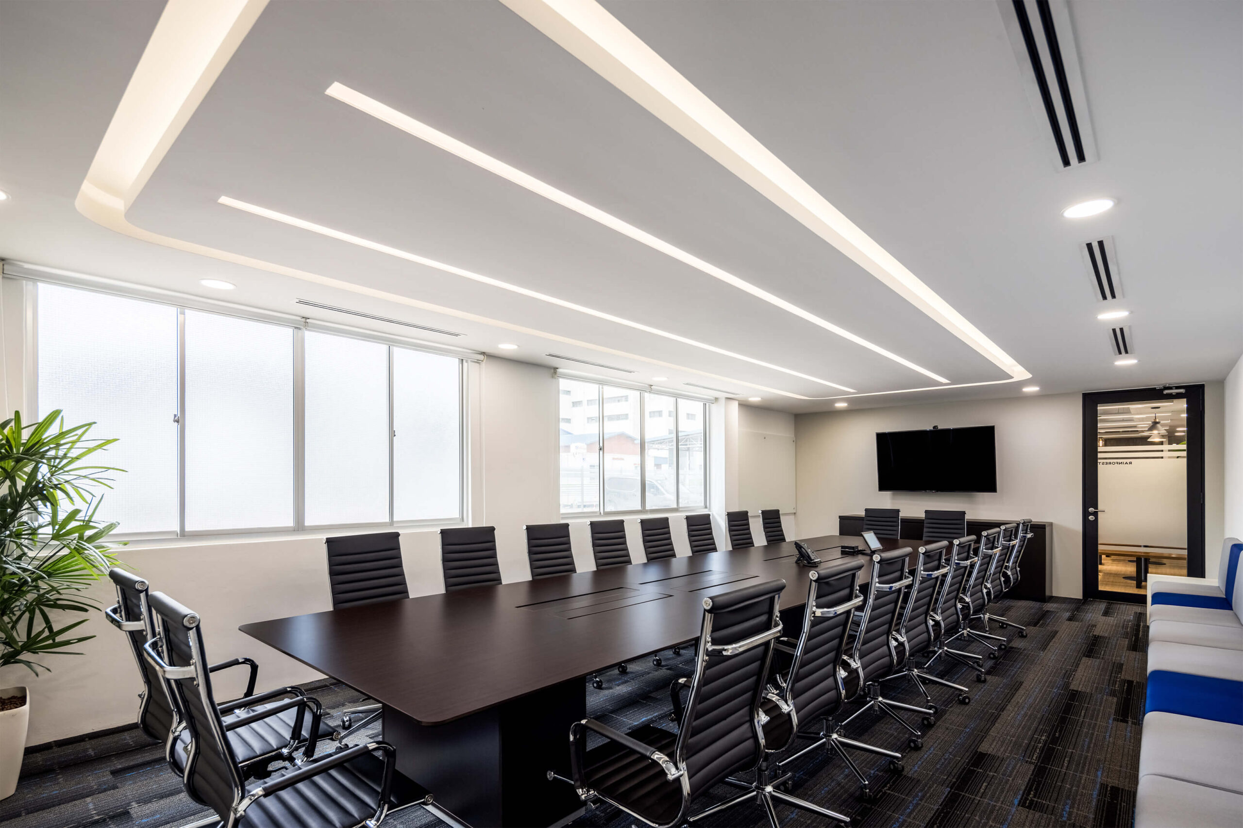 最多可容纳 20 人,我们保留了专业董事会议室的设计风格和柔和的调色板。
