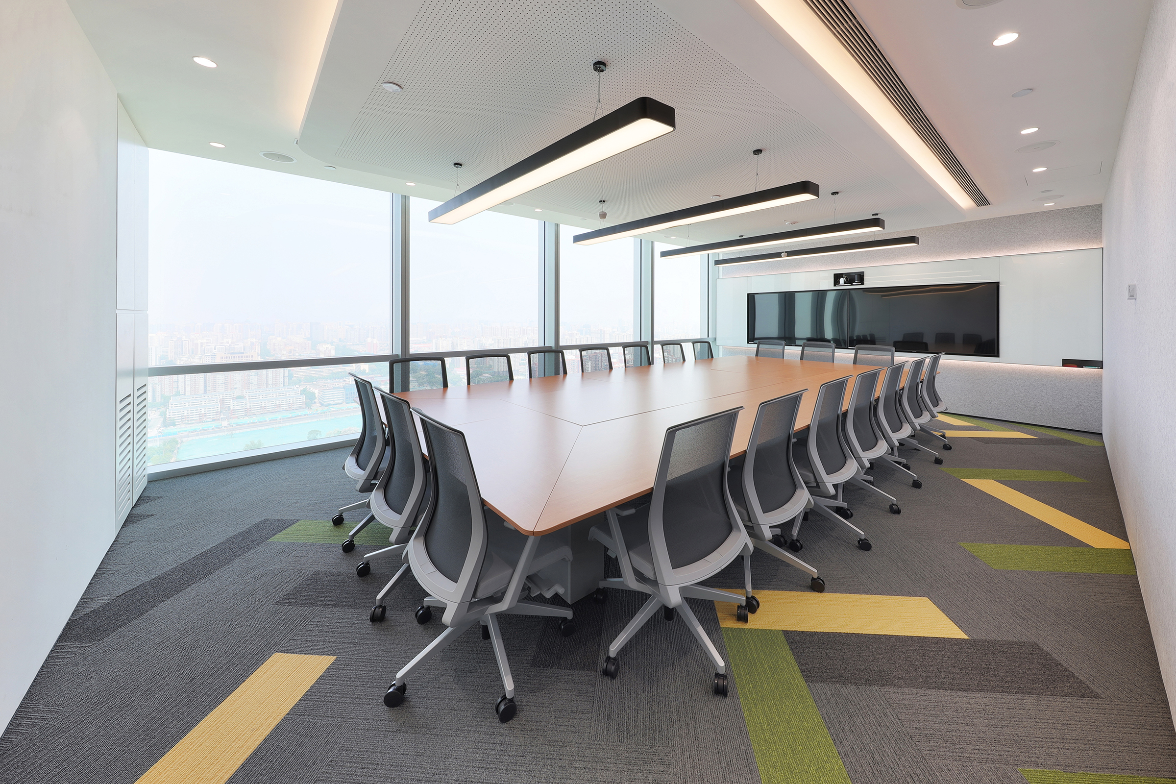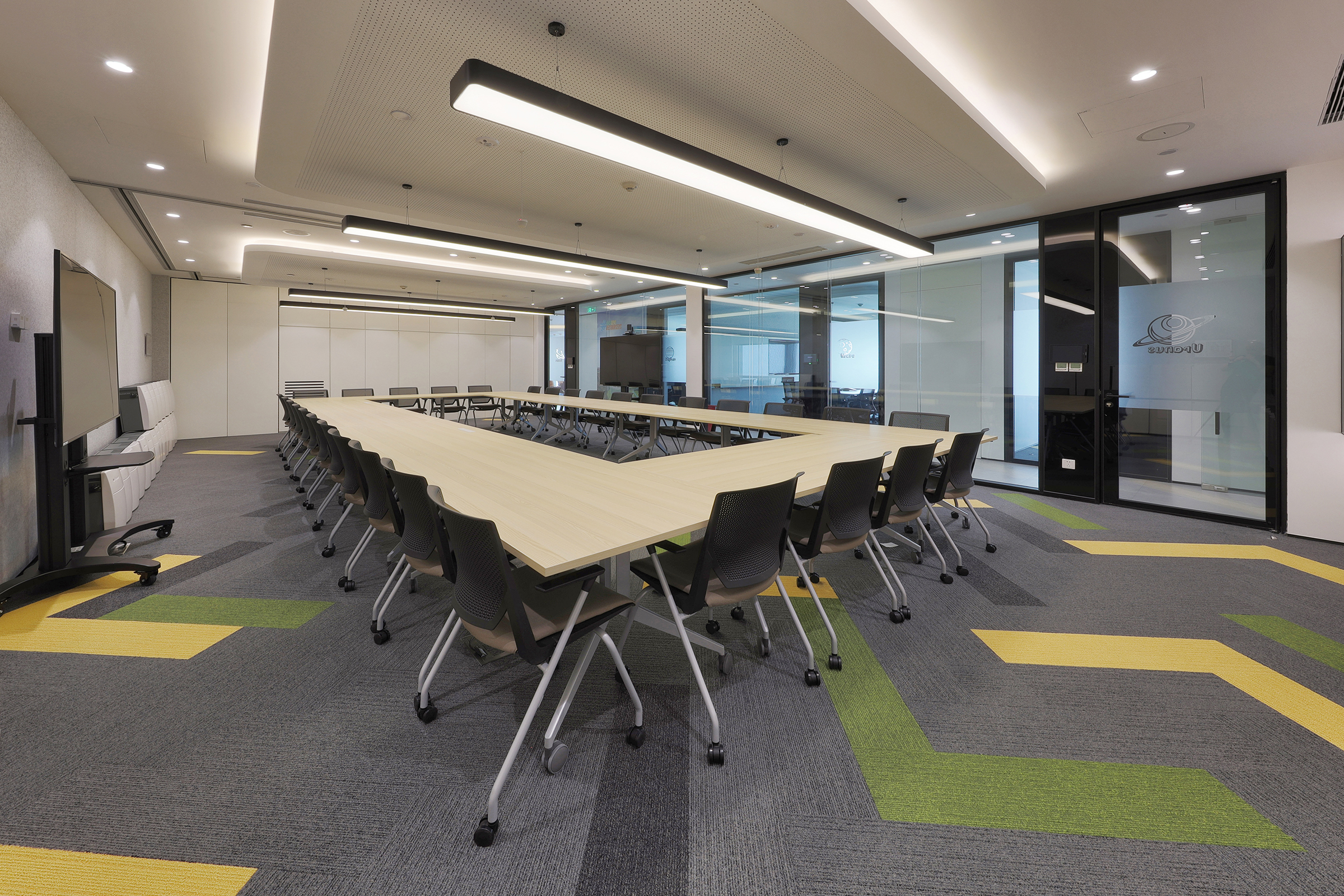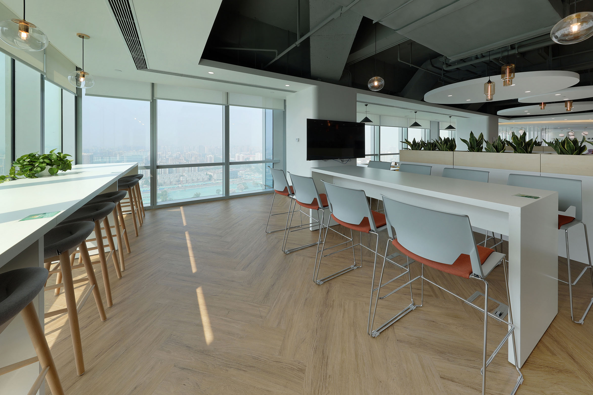 设计团队还应用了一个独特的设计元素,以达到视觉效果。盘旋在空间上方的天花板的设计模仿了荚状云,在没有墙壁的大空间里给人以微妙的界限划分印象。