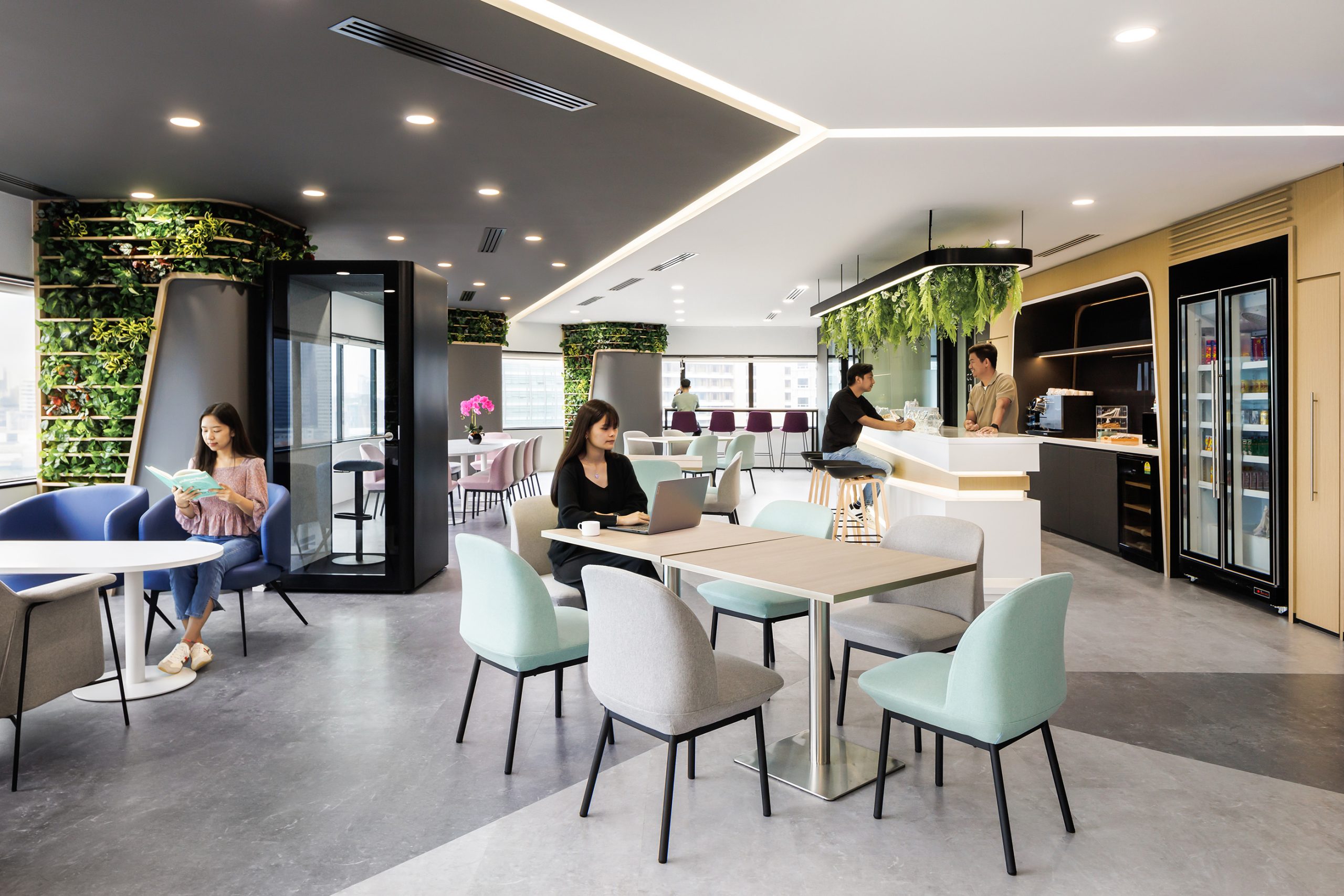 总体而言,这个占地 10,700 平方英尺的空间是为尊重品牌形象和员工需求而设计的。开放式协作空间和私人会议室的组合,加上定制的设施,共同为新加坡团队创造了一个均衡的空间。