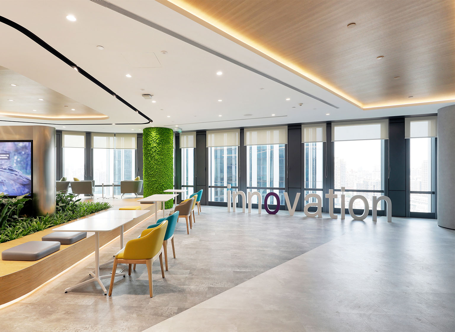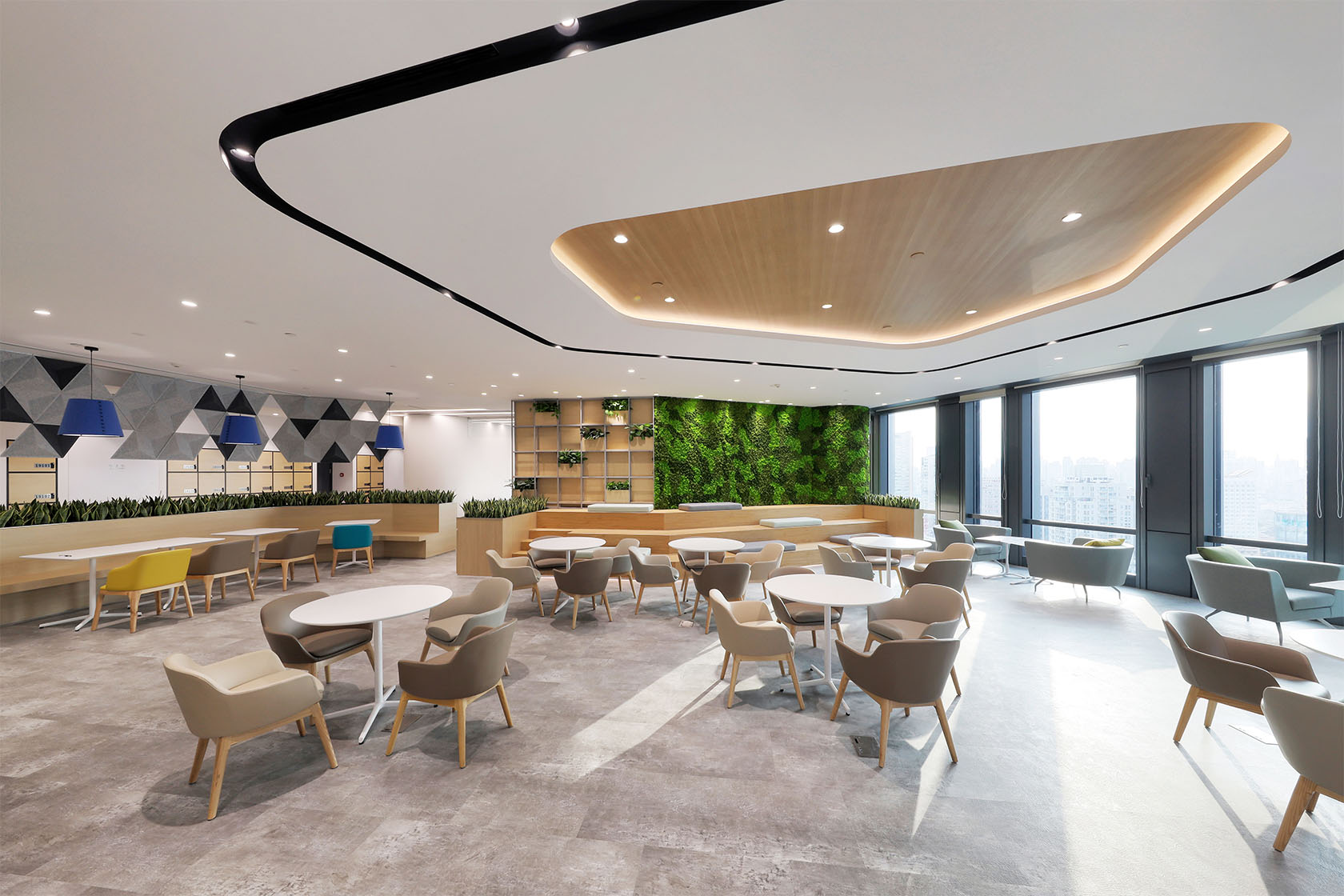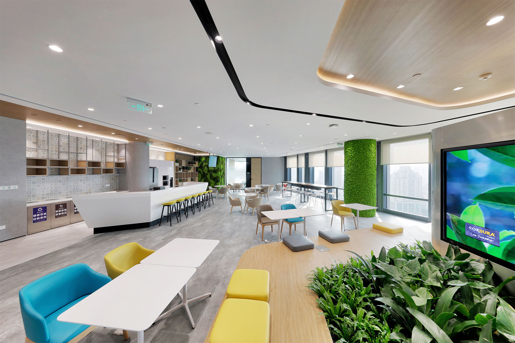 The diverse selection of seating, a stylish water front bar area, a blend of different furniture selection, formal private meeting rooms can play host to a variety of activities. Whether it’s a luncheon or even a party, people have plenty of opportunities to interact in a social, professional and innovative environment. This ecosystem allows work and lifestyles to collide and fuse in multiple dimensions, providing employees and visitors with a warm and relaxed setting.
