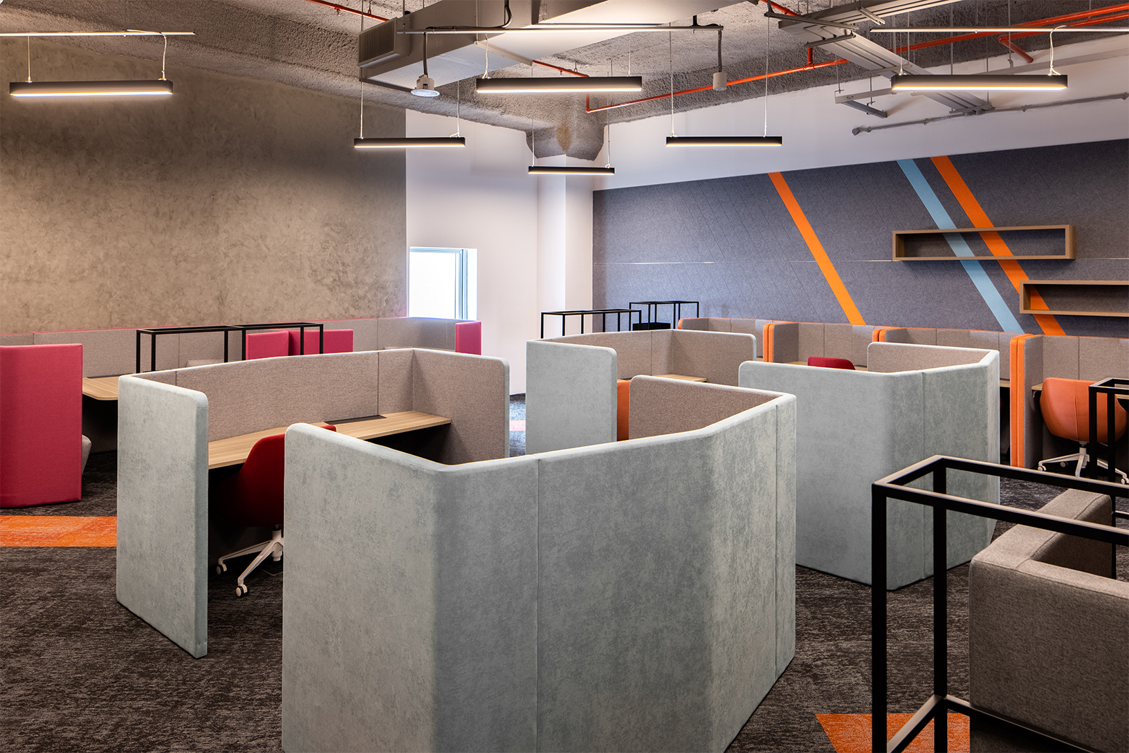 ASM’s main office space occupies the entire fifth level of the building. To promote agility in the new space, ASM’s management team led by example to shift from traditional, assigned workstations to be part of the open office. This promotes transparency within the organization and encourages effective communication between managers and their team, who make up the key building blocks of the organization.